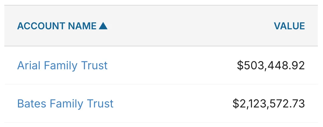 Track shared bank accounts across multiple trusts. Three-layer architecture from bank to allocation to trust entries.